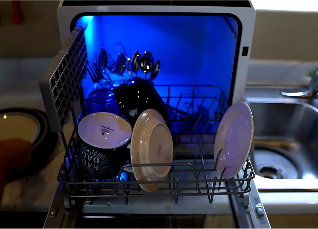 The built-in blue LED light illuminates the dishwasher’s interior, making it easier to load and unload dishes—even in low-light kitchens. The stylish glow not only enhances visibility but also gives your appliance a modern, premium look while ensuring every dish is placed securely for an efficient wash.